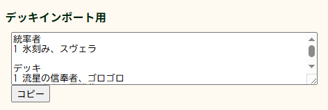 それがデッキレシピの下にあるテキストボックスとコピーボタンだ。